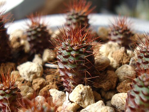 冬に蒔いたツルビニカルプス属の精巧殿です。 名札を付けなかったので、同時期に蒔いた強刺バッテリーとどちらか分からなくなってしまっていたのですが・・・ この特徴的な刺座、間違いなくこちらが精巧殿ですね。 この刺がやがてワラジムシのような模様にな…