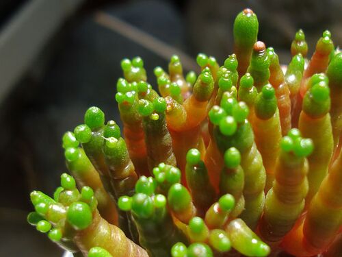 最近、近所の園芸店で少し変わったユーフォルビアを見かける事が多くなりました。 ブームってわけでも無さそうですし、店長さんの趣味ですかね。 変な草好きの私としては、嬉しいかぎり。 石灰岩にしか見えないユーフォルビア、アブデルクリです。 1月に購入…